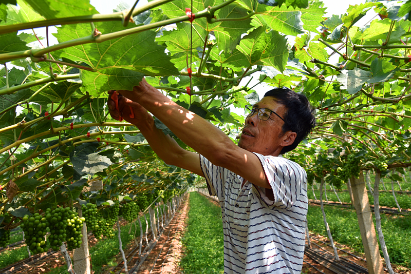 成为“土专家”的他,如今已经在村里带动4户村民发展了近30亩的葡萄园。李社儒告诉记者,在“五联一抓”工作机制作用下,去年政府引导他们建设避雨棚,并给予一定资金补贴,没想到当年就遇到了连阴雨,新集村的葡萄不但没有受到连阴雨的影响,反而还卖了个好价钱。