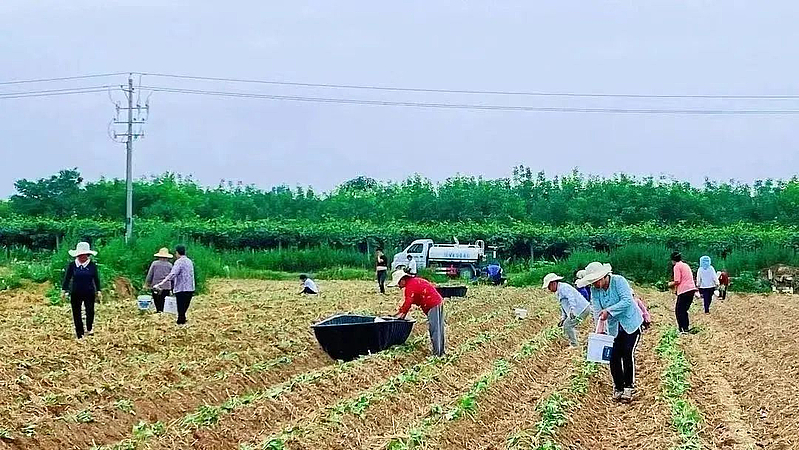 通过合作社的形式大力发展村集体经济的好处就是,产业富了口袋,村民变成工人。今年 60岁的李满民这两天在家门口工作,每天都能领到100元的工钱,既能增加收入,又方便照顾家人。“现在不用出去打工了,本身年龄大了,工地上也没人要,咱们把村上的庄稼种好就行。”李满民一边干活一边笑着表示。炎热的天气丝毫未减村民们的种植热情,栽下一棵蜜薯苗,就仿佛已经看到了蜜薯苗茁壮成长,结出沉甸甸的致富果。