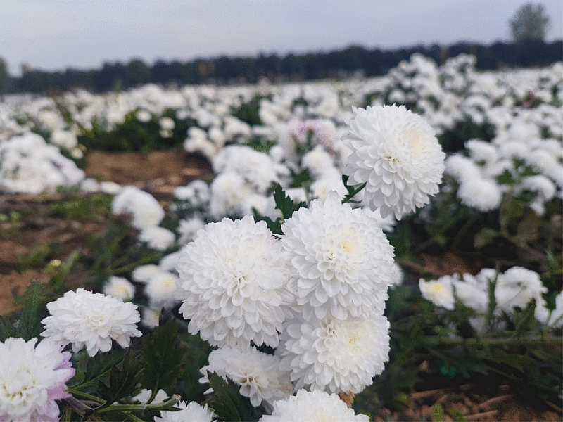 10月24日,走进崔家寨村菊花种植基地,放眼望去,成片的菊花摇曳生姿,一朵朵雪白的菊花竞相盛放,芳香扑鼻。趁着晴好天气,十几名村民分散在花田间忙着采摘,现场一幅丰收景象。