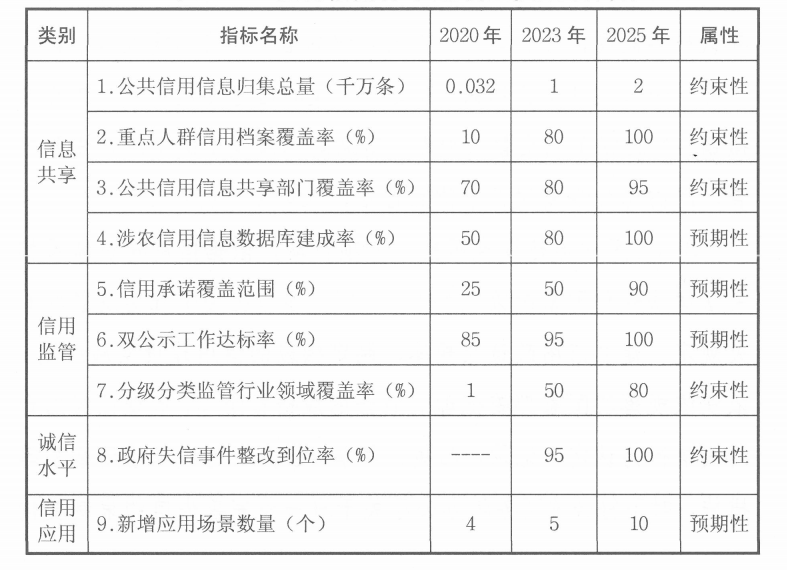 “十四五”社会信用体系建设主要建设目标