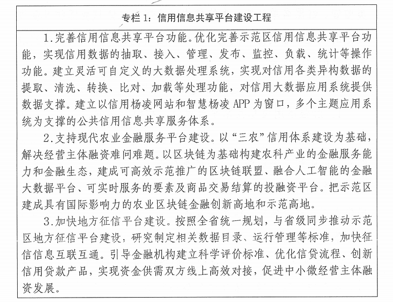 ——信用信息系统全面建成。推进数字杨凌建设,加快数字化平台化集成应用。以“一网三库一平台”为主体的信用信息系统全面建成。建设数字化金融综合服务平台,探索金融服务实体经济的有效式。