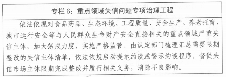 3.完善事后信用联合奖惩机制。依法依规推进政府市场监管和公共服务部门对诚实守信者优先提供服务,简化程序等“绿色通道”,减少监管频次,依法给予守信主体在融资、用地、年检、报关等方面政策倾斜。对诚实守信的法人和自然人,给予激励措施,优化行政监管安排,降低市场交易成本,并积极向社会推介,在“信用中国(陕西杨凌)”网站或相关媒体上进行宣传。按照相关规定对诚信企业和个人予以表彰,营造守信光荣的社会氛围。严格贯彻执行国家和我省已签署的失信联合惩戒备忘录,根据本行业出台的失信联合惩戒对象认定程序,依法依规落实联合惩戒措施清单。构建跨行业、跨领域的失信联合惩戒机制,依托示范区信用信息共享平台,将失信联合惩戒融入示范区政务服务、各职能部门业务系统流程,依法依规对失信联合惩戒对象在政府采购、招标投标、土地拍卖、申请财政性资金项目、享受税收优惠、股票发行等方面采取行政性惩戒措施。