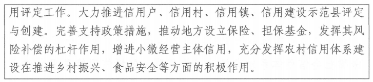 3.探索信用助力三农新模式。推进人工智能、大数据、云计算、物联网、卫星遥感、地理信息等新一代信息技术在农业生产过程中的深度应用。以专业大户、家庭农场、农民合作社、农业企业等新型农业经营主体为重点,建立农产品生产主体信用档案,开展农产品生产主体信用评级,依据信用评价结果实施分级分类监管,将信用评价结果纳入“双随机”抽查监管机制及农产品合格证管理。
