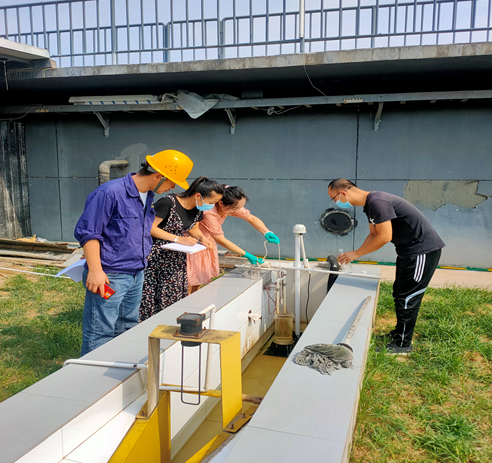【上午9:00 杨凌区某企业的污水处理设施旁边。】示范区环境监测站陈艳鸽、焦燕云两名女同志正在对该企业开展排污许可证自行监测检查工作。此时的室外温度已经38℃,但为了更全面、准确的掌握污水处理设施运行情况,两名同志现场调查了企业生产工艺,核实排放情况,对企业自行监测情况进行调查了解,对自行监测方案和第三方监测机构资质情况、监测方案内容与实际开展情况的一致性、信息公开的完整性、及时性以及监测指标的完成率,逐一进行检查指导,对企业在开展自行监测工作中存在的问题,进行了认真梳理并提出了整改建议。