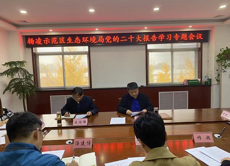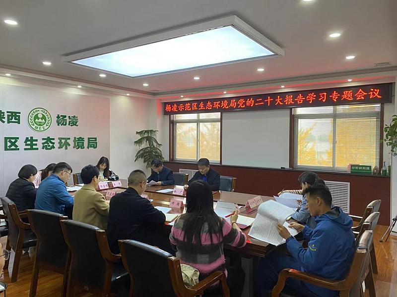 10月26日,杨凌示范区生态环境局召开支部扩大专题学习会议,传达学习贯彻党的二十大精神。局全体工作人员、环境监测站主要负责同志、全体党员和职工代表参加了会议。