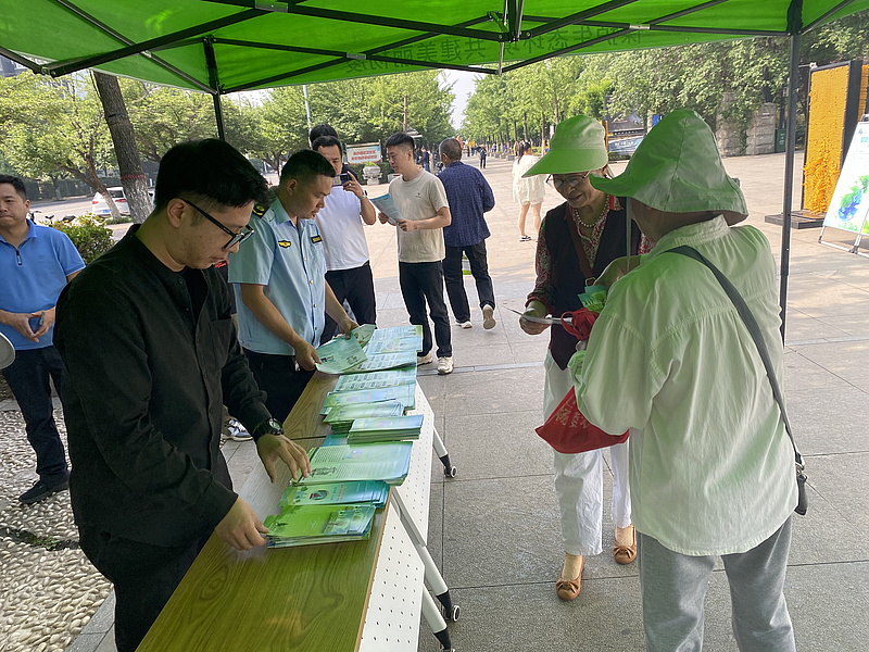 活动现场,通过摆放展板、海报、发放宣传手册等方式,向广大公众宣传生态环境保护理念。工作人员现场向群众解答环保相关的法律法规知识,发放宣传手册500余份、环保宣传品300余个,营造了良好的环保宣传氛围。