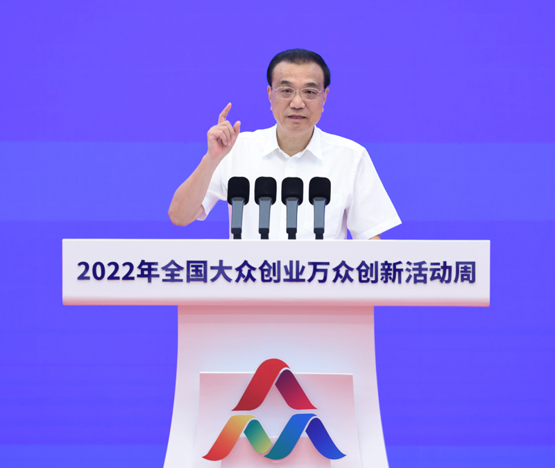 9月15日,中共中央政治局常委、国务院总理李克强在北京人民大会堂出席2022年全国大众创业万众创新活动周,发表重要讲话,宣布活动周启动。新华社记者 王晔 摄