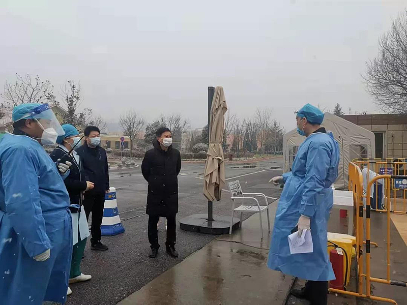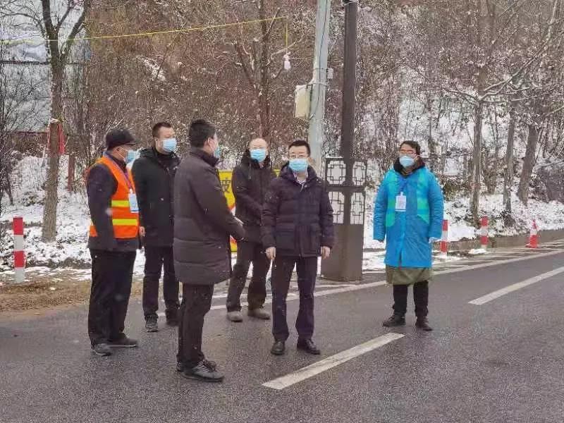 12月25日,杨凌迎来降雪天气,气温骤降,疫情防控工作人员依然坚守岗位,守护着全区人民。按照党工委安排部署,示范区领导何玲、王宝平、董立民、蒋展宏、袁鸿马、程津庆、杨芳乾、陈辉、张广东分别深入交通卡口和重点场所,看望慰问坚守一线的疫情防控人员。