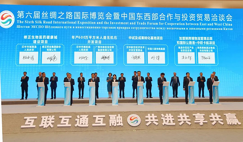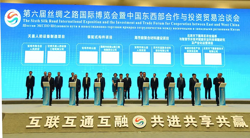 8月15日下午,第六届丝绸之路国际博览会暨中国东西部合作与投资贸易洽谈会第二场大会集中签约仪式在西安举行。省委常委、省委宣传部部长蒿慧杰,省人大常委会副主任、省总工会主席郭大为出席签约仪式。杨凌示范区管委会副主任程津庆出席。仪式上,杨凌示范区四个重点项目,签约15.75亿元。
