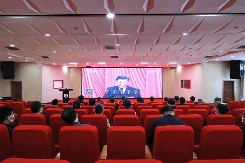在杨凌农科传媒集团,全体党员干部集中收听收看党的二十大开幕盛况,认真聆听习近平总书记在大会上所作的报告。