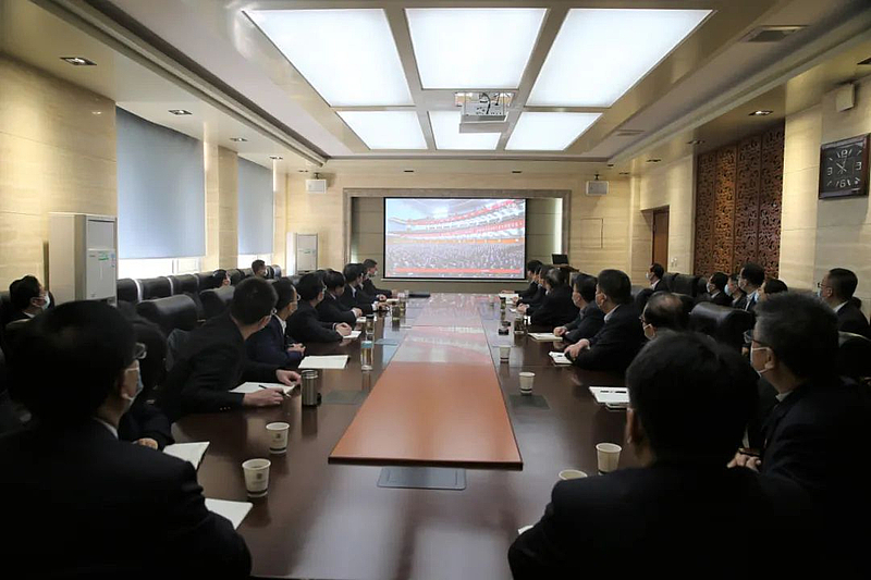 在西北农林科技大学国际交流中心,学校在校领导及党委各部室负责人集体收看中国共产党第二十次全国代表大会开幕,认真学习领会习近平总书记在大会上所作的报告。
