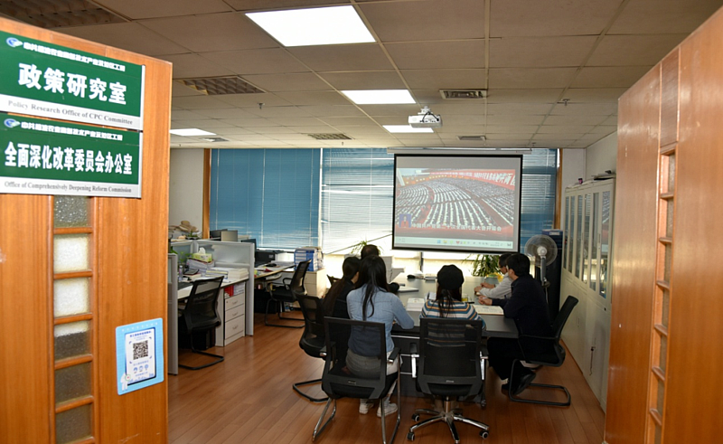 示范区党工委管委会办公室组织干部职工收听收看中国共产党第二十次全国代表大会开幕实况。