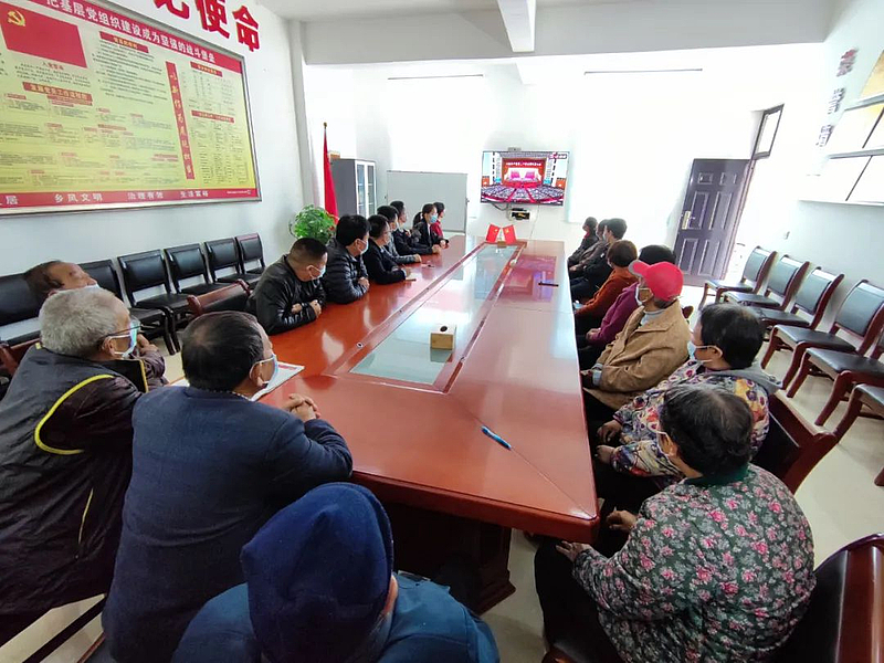 田西村在党员活动室集中组织广大干部群众认真收看中国共产党第二十次全国代表大会开幕实况。