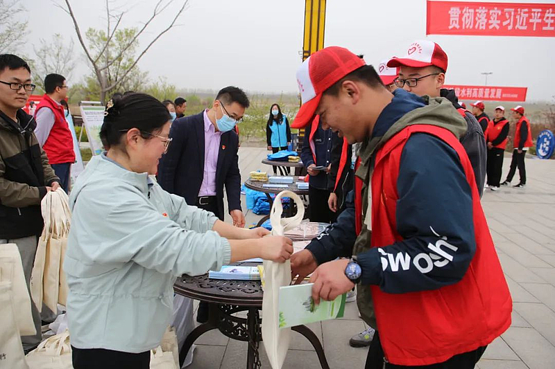 在渭河若水台,宣传工作人员和大学生志愿者通过展示宣传展板,发放宣传单、纸杯、围裙、环保手提袋等宣传品,广泛宣传涉水法律法规及《黄河保护法》《陕西省渭河保护条例》、节约用水常识等与群众生活息息相关的内容,引导广大市民培养节水、爱水、惜水、护水和科学用水的习惯。