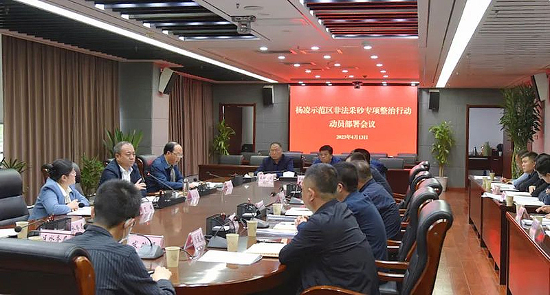 4月13日,杨凌示范区召开非法采砂专项整治行动动员部署会议,示范区党工委委员、管委会副主任、副总河长马江涛出席会议并作动员讲话。