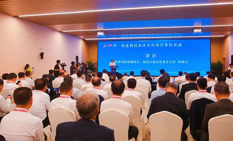 9月19日,第30届杨凌农高会农业科技市区合作项目签约活动举行。陕西省副省长、杨凌示范区管委会主任钟洪江讲话,并为“洛川苹果”等5个“上合组织农业基地优选出口基地”授牌。陕西省政府副秘书长雷江声主持。省农业农村厅副厅长任步学,省科工委委员、省科技厅二级巡视员郭杰,安康市委书记武文罡,渭南市委副书记、市长陈晓勇出席。杨凌示范区党工委副书记、管委会常务副主任史高领介绍市区合作进展情况,并为秦创原农业创新驱动平台试验区授牌。