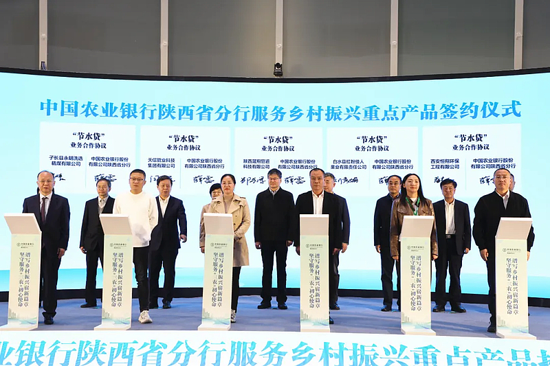会上,中国农业银行陕西分行推介了“高标准农田贷”“植物新品种权质押贷”“陕果贷”“陕茶贷”“智慧畜牧贷”“惠农e贷”“农村集体经济组织贷”“节水贷”“文旅贷”“乡村人居环境贷”十大服务乡村振兴重点产品。并先后与中陕高标准农田建设集团有限公司、杨凌国瑞农业科技有限公司、陕西齐峰果业有限责任公司、陕西东裕生物科技股份有限公司、中垦华山牧业有限公司、略阳县黑咯咯乌鸡养殖农民专业合作社、岐山县蒲村镇蒲村村股份经济合作社、商南金丝峡旅游发展有限责任公司、咸阳引汉济渭大秦水务有限公司、平利县一茗茶业有限公司、西安恒翔环保工程有限公司、白水县红粉佳人果业有限责任公司、陕西晟翔管道科技有限公司、天信管业科技集团有限公司、子长县永明洗选精煤有限公司签订合作协议。