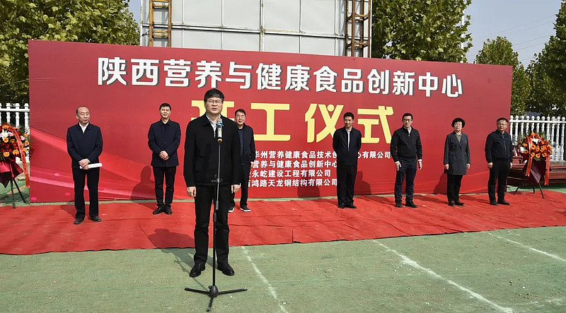 10月21日,陕西省营养与健康食品创新中心项目开工仪式在永安路项目施工现场举行,杨凌示范区党工委副书记、管委会常务副主任史高领宣布项目开工,示范区党工委委员、管委会副主任袁鸿马致辞。