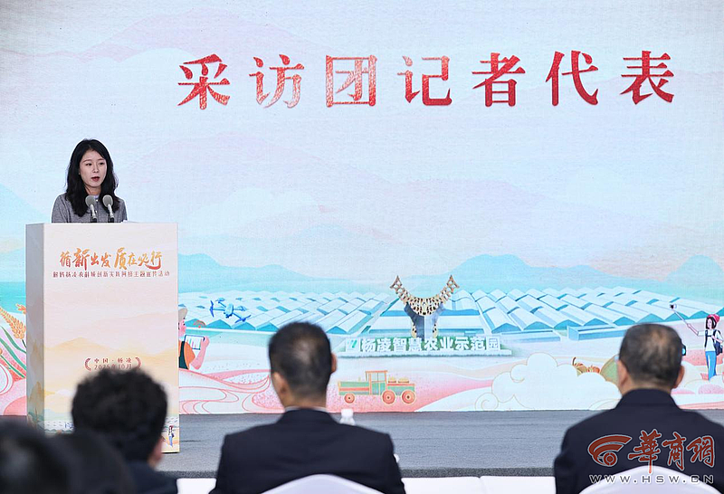 媒体代表华商网记者郭佳欣在发言中表示,即将举办的第三十二届杨凌农高会为媒体采访报道提供了丰富的素材和广阔的舞台。面对杨凌在农业科技创新、成果推广、国际合作、乡村振兴等方面的生动实践和丰硕成果,采访团记者们将自觉践行“四力”要求,努力创作出有思想、有温度、有品质的作品。