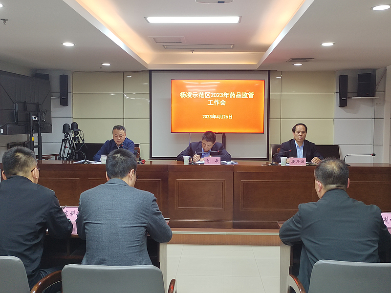 4月26日下午,杨凌示范区召开2023年全区药品监管工作会议,示范区市场监管局党组书记、局长白敏出席并讲话,党组成员、省药监局杨凌分局副局长安兴国作2023年药品监管工作报告,会议由党组成员、副局长杨忠武主持。全区各药品、医疗器械、化妆品生产企业关键人员,药品批发企业负责人,药品经营企业代表,示范区市场局药品监管相关科室负责人共70余人参加会议。