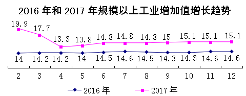 2017年,示范区规模以上工业完成产值185.61亿元,增长15.7%,实现增加值53.94亿元,增长15.1%,增加值增速较上年同期提高0.5个百分点,高于全省6.9个百分点,低于排名第一的安康0.7个百分点,连续八个月位居全省第二。全区规模以上工业经济总体保持平稳增长、稳中有进的运行态势。