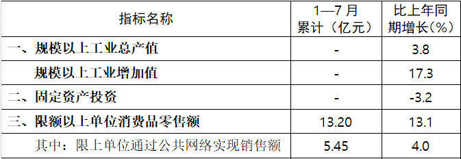 杨凌示范区2023年7月份主要经济指标数据