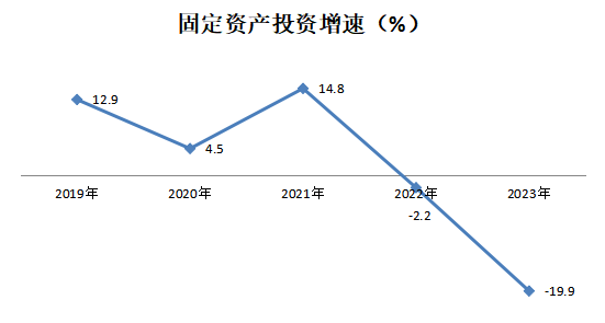 2023年,全区固定资产投资同比下降19.9%,其中,项目投资下降11.3%,房地产投资下降34.2%。商品房销售面积下降32.5%,待售面积增长175.5%。