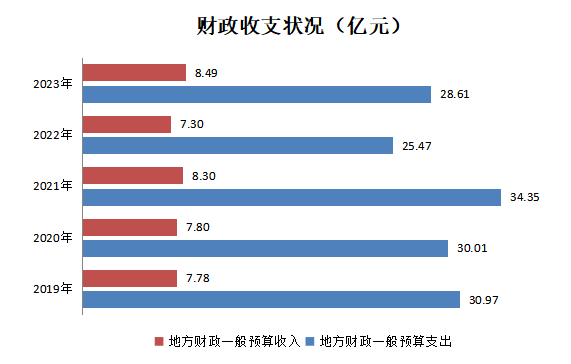2023年,示范区地方财政一般预算收入8.49亿元,同比增长16.3%,其中税收收入6.74亿元,增长20.9%。地方财政一般预算支出28.61亿元,增长12.3%。
