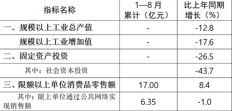 杨凌示范区2024年8月份主要经济指标数据