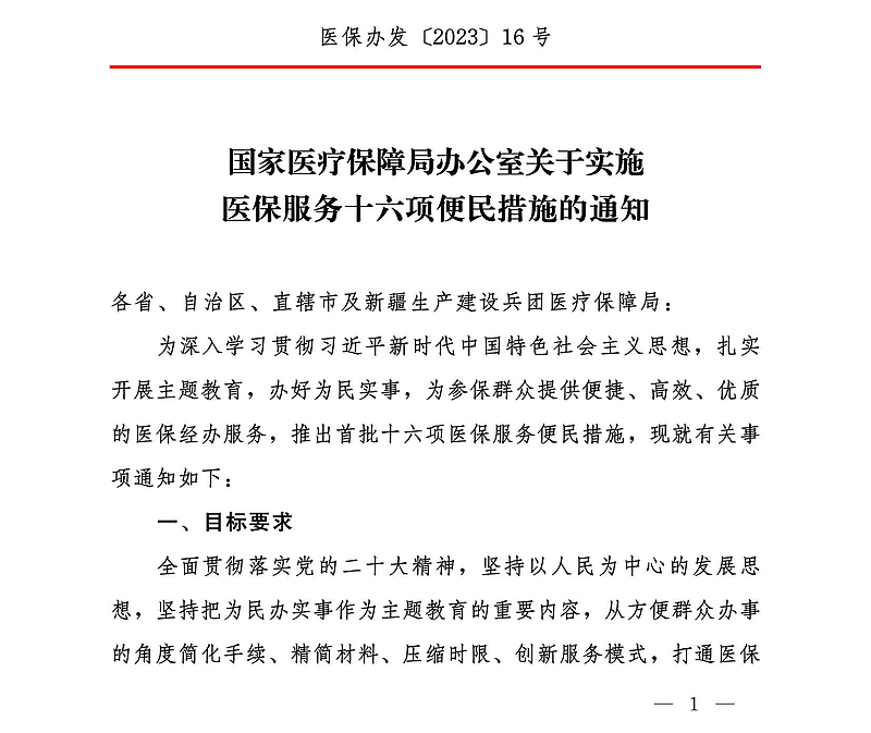 国家医疗保障局办公室关于实施医保服务十六项便民措施的通知