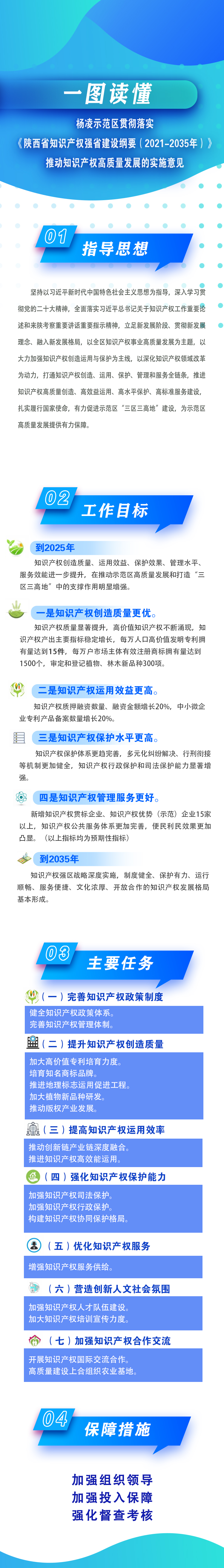 为深入贯彻落实《中共陕西省委、陕西省人民政府关于印发〈陕西省知识产权强省建设纲要(2021—2035年)〉的通知》(陕发2022〕15号)精神和省委、省政府关于知识产权强省建设的工作要求,加快融入知识产权强省建设步伐,中共杨凌示范区工委、杨凌示范区管委会制定了《杨凌示范区贯彻落实〈陕西省知识产权强省建设纲要(2021—2035年)〉推动知识产权高质量发展的实施意见》。