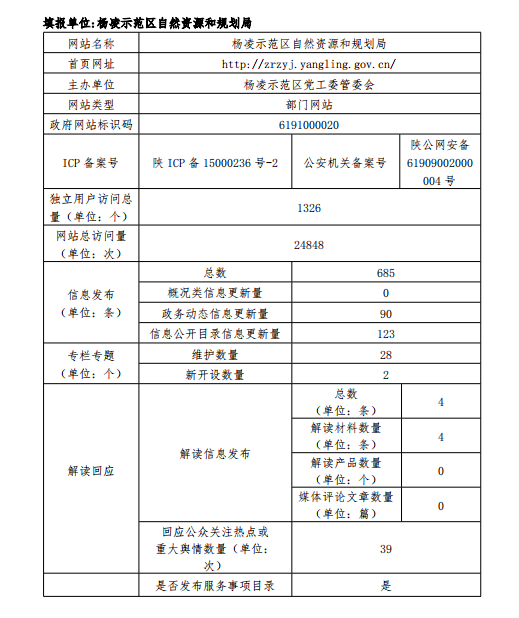 政府网站工作年度报表(杨凌示范区自然资源和规划局)(2019年度)