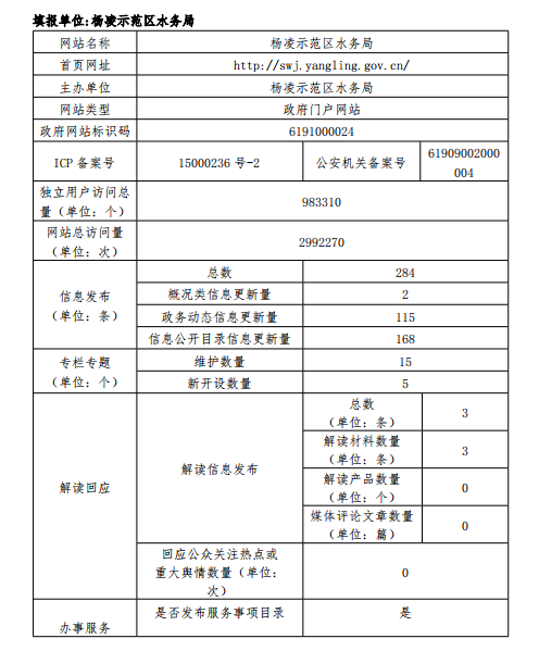 政府网站工作年度报表(杨凌示范区水务局)(2019年度)