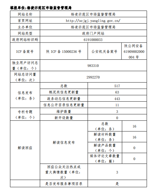 政府网站工作年度报表(杨凌示范区市场监督管理局)(2019年度)