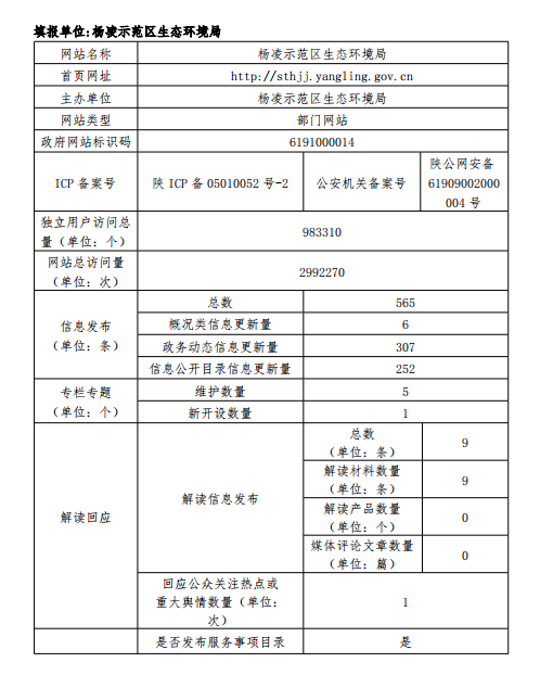 政府网站工作年度报表(杨凌示范区生态环境局)(2019年度)
