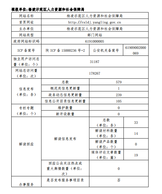 政府网站工作年度报表(杨凌示范区人力资源和社会保障局)(2019年度)