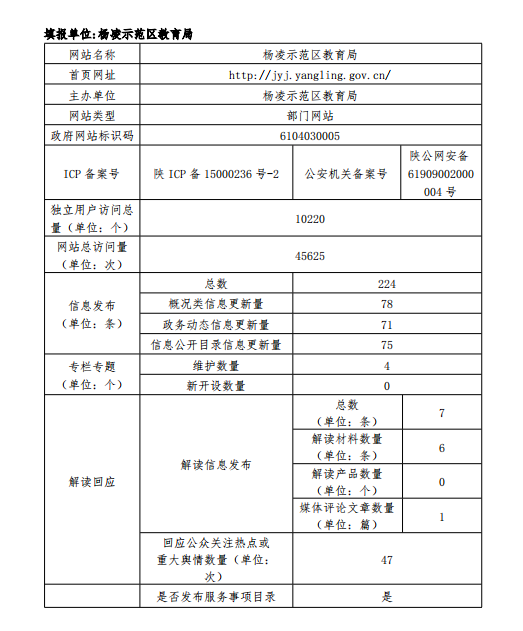 政府网站工作年度报表(杨凌示范区教育局)(2019年度)