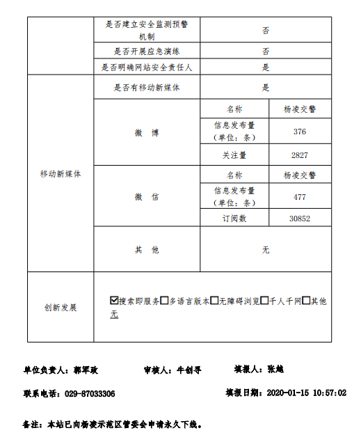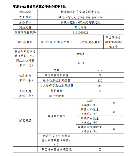 政府网站工作年度报表(杨凌示范区公安局交巡警支队)(2019年度)
