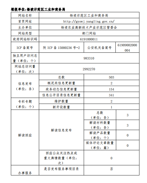 政府网站工作年度报表(杨凌示范区工业和商务局)(2019年度)