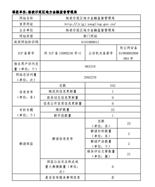 政府网站工作年度报表(杨凌示范区地方金融监督管理局)(2019年度)