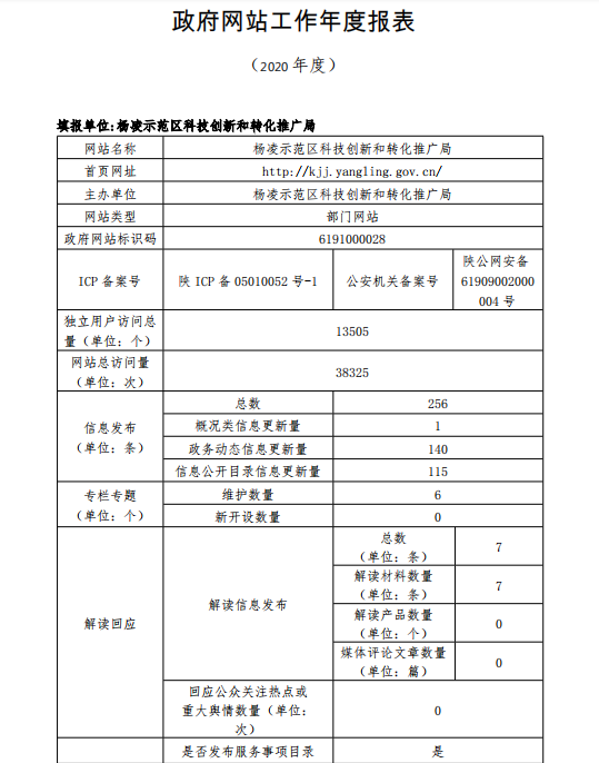 政府网站工作年度报表(杨凌示范区科技创新和转化推广局)(2020年度)