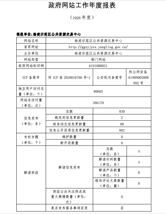 政府网站工作年度报表(杨凌示范区公共资源交易中心)(2020年度)