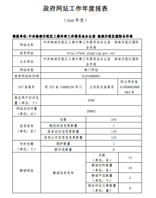 政府网站工作年度报表(杨凌示范区国际合作局)(2020年度)