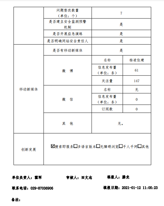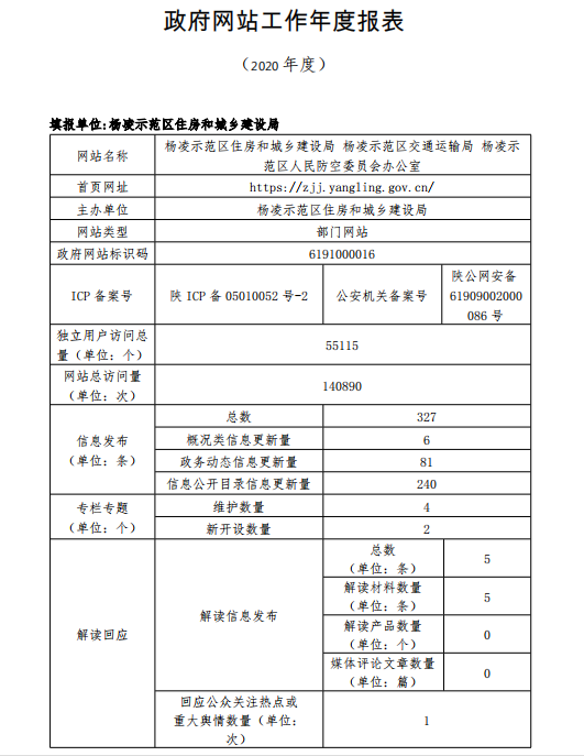 政府网站工作年度报表(杨凌示范区住房和城乡建设局)(2020年度)