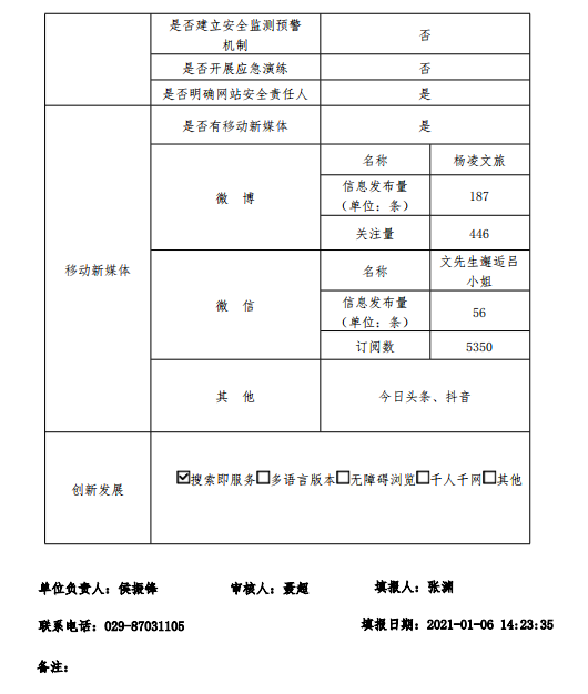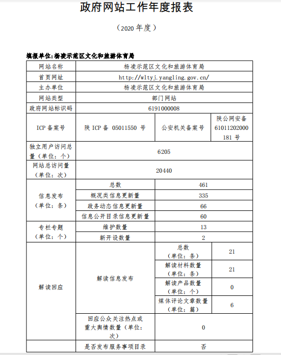 政府网站工作年度报表(杨凌示范区文化和旅游体育局 )(2020年度)