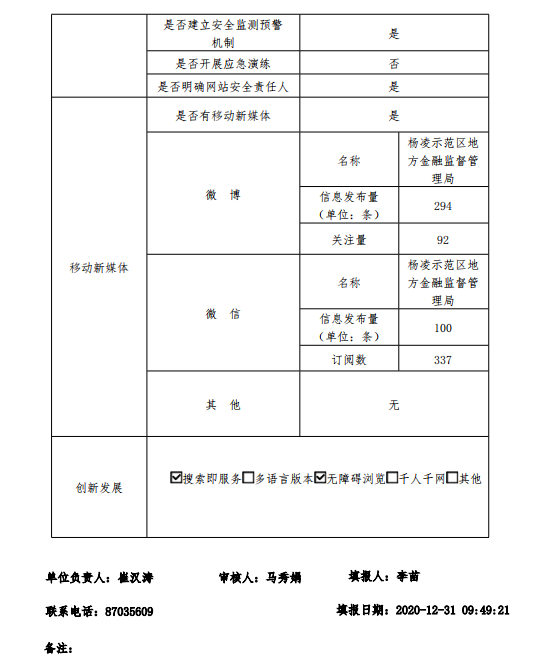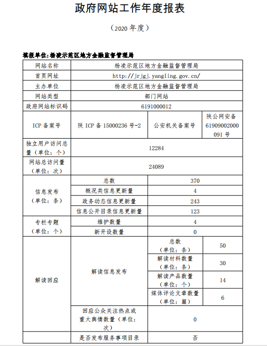 政府网站工作年度报表(杨凌示范区地方金融监督管理局)(2020年度)