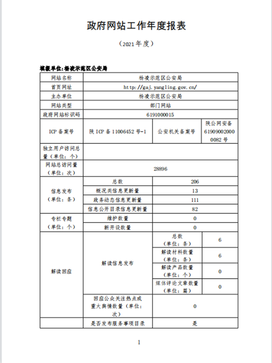 政府网站工作年度报表(杨凌示范区公安局 )(2021年度)