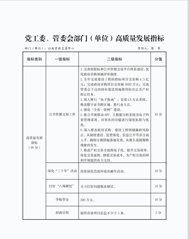 杨凌示范区公共资源交易中心2025年度目标责任书