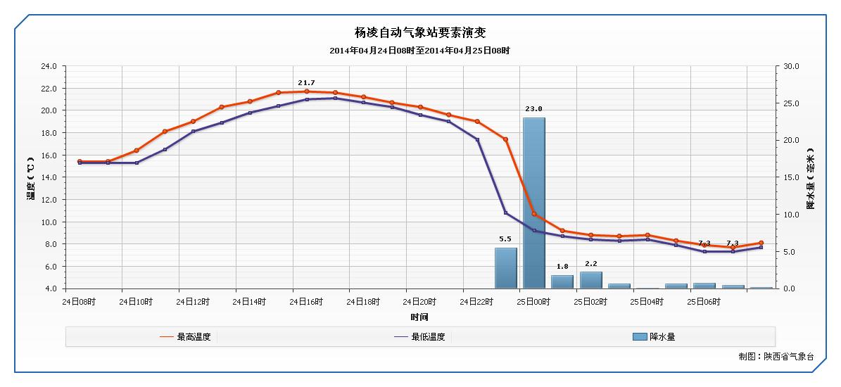 2014年4月24日夜间,杨凌出现了一次强对流天气过程,过程伴有较强雷电、短时大风和短时暴雨,气温也在短时间内明显下降。