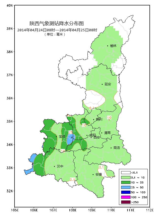 全省降水分布不均,多以对流性降水为主,大降水主要分布在关中、陕南西部,杨凌为全省降水大值中心所在。分布情况如图1所示: